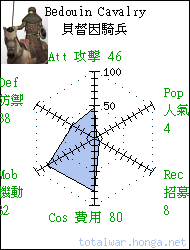 貝督因為沙漠遊牧部落,其部民強悍桀驁。他們輕裝上陣,熟悉沙漠作戰,擅長側翼騷擾和攻擊遠程部隊。儘管貝督因騎兵突襲技藝高超,但不適合長時間肉搏廝殺。