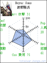 Boyar Sons 波耶騎兵 missile cavalry These young adventurers wear light mail or light brigandine armour and carry a javelin and an axe . 波耶騎兵身穿輕型鏈甲或鑲甲, 手持標槍長斧,極為驍勇善戰。