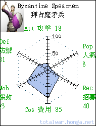 Byzantine Spearmen 拜占庭矛兵 spearmen infantry A step up from spearmen militia, these troops are equipped with spear and shield, capable of forming a defensive ring. 拜占庭矛兵由長矛民兵精選而 來,裝備長矛和盾牌,能夠以 圓陣拒敵。