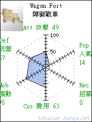 Wagon Fort 障礙戰車 missile infantry Wagons that can be formed into a circular barricade, behind from which the troops armed with crossbows can fire. 障礙戰車能夠圍成環形防禦工 事,令弓弩部隊安全位於工事 內遠程殺傷敵軍。