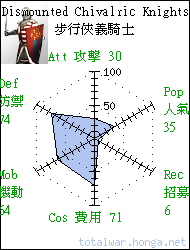 Dismounted Chivalric Knights 步行俠義騎士 heavy infantry Benefiting from improvements in arms and armour these elite warriors are still formidable, even when they choose to fight on foot. 俠義騎士裝備全鋼板甲,刀槍 不入,即便步戰廝殺威力同樣 恐怖。
