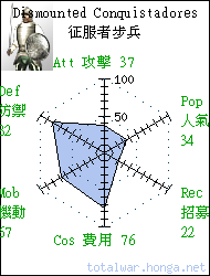 These men are the hardy pioneers that set out to conquer America. Although driven primarily by greed, they exhibit exceptional bravery, cunning and resilience. With their steel half plate armour, and razor sharp steel swords, these men are absolutely devastating against lesser troops. They can only be recruited in America.