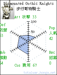 Dismounted Gothic Knights 步行哥特騎士 heavy infantry Impressive looking knights, well protected by armour and armed with a two-handed sword. 哥特騎士裝備極為精良,身穿 重甲,揮舞雙手長劍。