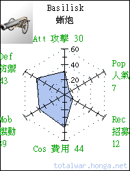 Number of turns to build, Cost of unit to construct, Cost of upkeep, Cost of upgrading weapons, Cost of upgrading armour, Cost for custom battles, Limit in custom battle, Cost for punish 徵召回合, 招募費, 維持費, 升級武器, 升級盔甲, 自訂戰役, 多於幾隊, 懲罰金額