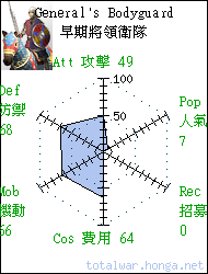 General's Bodyguard 早期將領衛隊 heavy cavalry These warriors are the general's personal guard, fiercely loyal, there is little this unit cannot take on. 將領衛隊忠心耿耿,極為驍勇 善戰,戰場上幾無任何敵軍堪 與之匹敵。
