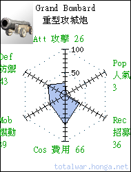 A Royal Arsenal allows for the construction of the finest siege artillery available. 皇家軍械廠能夠製造各類更為先進的火炮。 |