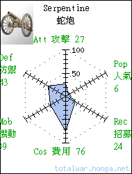 Serpentine 蛇炮 missile siege Light cannon designed for use against troops rather than walls. 蛇炮是用於專門殺傷敵軍部隊 而非轟擊城牆的輕型加農炮。