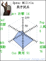 Spear Militia 長矛民兵 light infantry Spear Militia are commoners and peasants levied into local militias to defend settlements and bolster armies, armed with long spears. 長矛民兵在歐洲隨處可見,通 常為招入本地民兵部隊的平民, 負責防禦城鎮、道路或支援主 力部隊,裝備長矛和盾牌。