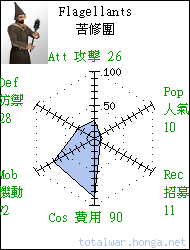 Flagellants are men who either through religious fanaticism, guilt over unspeakable acts or after suffering one too many tragedies have turned to an informal religious movement that practices self-mortification, most commonly through whipping. These tortured and deranged souls have banded together to go on crusade, armed with fanaticism, stern self discipline and a simple handweapon such as a mace.
