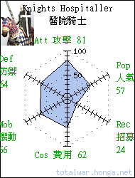 Knights Hospitaller 醫院騎士 heavy cavalry Well trained and disciplined these knights are amongst the deadliest heavy cavalry in all Christendom. 醫院騎士訓練有素,紀律嚴明, 躋身基督世界中最為精銳的騎 兵部隊。