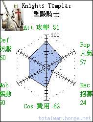 Knights Templar 聖殿騎士 heavy cavalry Elite and some say reckless knights formed to protect Christian pilgrims in the Holy Lands. 聖殿騎士是武裝護衛朝聖者前 往聖地朝聖的精銳軍隊。