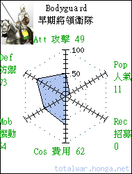 Bodyguard 早期將領衛隊 heavy cavalry Men dedicated to protecting the general. Hand-picked for loyalty and valour. 將領衛隊是保護將領征戰沙場 的忠誠護衛,自軍中忠貞勇武 者內遴選而出。