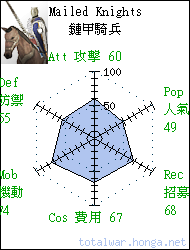 Mailed Knights 鏈甲騎兵 heavy cavalry Encased in mail and equipped with lances and swords these early knights are formidable fighting machines. 鏈甲騎兵屬於早期騎兵,身穿 鏈甲,手持騎槍和長劍,是恐 怖的殺戮機器。