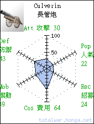 Culverin 長管炮 missile siege Able to fire solid or exploding shots, the culverin is devastating against enemy walls and lethal against enemy troops! 長管炮可發射實心或開花炮彈, 既能破壞敵軍防禦設施,亦可 大量殺傷敵軍有生力量。