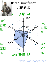 Though the axe is a popular weapon for Danes, wielding a sword shows that the wielder is a man of worth. These swordsmen come from minor nobility and have superior training to the common troops. Their station means they can afford decent armour as well, all having at least chainmail, and many upgrading to plate.