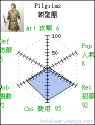 Pilgrims are civilians, common folk, priests etc. who are undertaking a pilgrimage to the Holy Land. The undertaking of such a journey is signified by wearing a cross, normally sewn on to the right shoulder or chest. As non-combatants, 'unwilling civilians caught in a battle', these folk are poorly equipped with only simple weapons for protection.