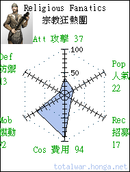 Number of turns to build, Cost of unit to construct, Cost of upkeep, Cost of upgrading weapons, Cost of upgrading armour, Cost for custom battles, Limit in custom battle, Cost for punish 徵召回合, 招募費, 維持費, 升級武器, 升級盔甲, 自訂戰役, 多於幾隊, 懲罰金額