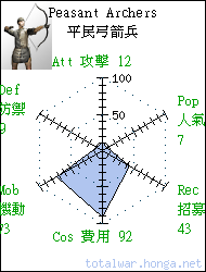 歐洲眾多平民被招募入伍皆非自願,實乃人為刀俎不得不然,但亦有部分平民歡欣鼓舞,因為藉此可獲得報酬,尚可周遊他國。平民用弓更適合狩獵,與軍用戰弓頗為不同,因此他們只能對抗輕裝部隊。弓箭兵們亦懷揣短刃以備肉搏,但畢竟無法與正規部隊近身廝殺,否則必將潰不成軍。