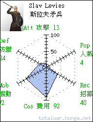 斯拉夫民族自東方遷徙,橫跨整個巴爾幹半島來到此地,通常分散定居,故而常為異族統治,被強制加入軍中服役。這些戰士雖然頗為強悍,但全無戰意。矛兵們使用長矛和盾牌,以鬆散陣型作戰,多用於支援其他部隊,而不可作為作戰防線中堅。