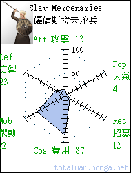 Slav Mercenaries 僱傭斯拉夫矛兵 light infantry Poorly trained and equipped mercenaries from Eastern Europe, armed with spears. 僱傭斯拉夫矛兵來自東歐,訓 練低劣,以短矛作戰。