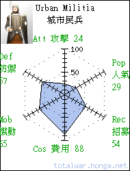 Urban Militia 城市民兵 heavy infantry Equipped with a sword, well trained and protected by heavy armour these troops are far superior to most militias. 城市民兵訓練有素,裝備長劍 和重型盔甲,作戰素質遠超大 多數民兵部隊。
