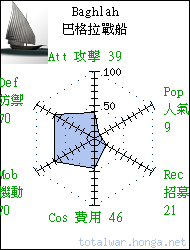 巴格拉戰船為阿拉伯艦種,最初出現於十三世紀,主要用於遠洋運輸。船體最多可承重400噸,同時還配有舷炮以防御海盜。該船續航能力極強,因此多用於遠途運輸部隊和軍需物資。