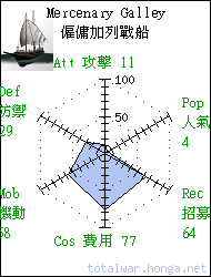 The basic Galley design is derived from ships used in Ancient Rome. Predominantly powered by banks of oars and armed with a ram and marines for melee. The Galley has supplemental sails for getting to battles without tiring the men and are used by everyone in the Mediterranean from east to west.